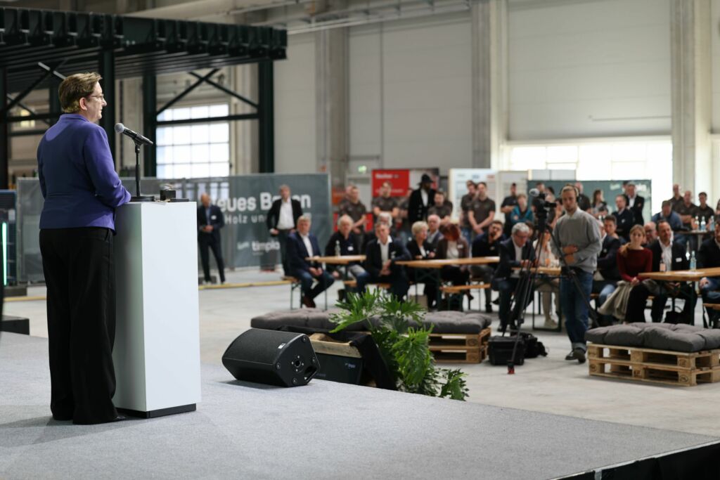 Am 19. September wurde das neue Produktionswerk von Timpla im Technologie- und Gewerbepark Eberswalde eröffnet. Mit 20.000m² Fläche und einer Jahreskapazität von 2.000 Holzmodulen will man mit dem Werk das nachhaltige Bauen vorantreiben. Bei der Veranstaltung betonten Bundesbauministerin Klara Geywitz und Brandenburgs Wirtschaftsminister Jörg Steinbach, wie bedeutend der innovative Holzbau sei, um Wohnraum zu schaffen und das Klima zu schützen. Timpla gilt als Vorreiter im seriellen Holzbau – mit Projekten wie der Revitalisierung von DDR-Plattenbauten und dem Bau modularer Unterkünfte für Geflüchtete.