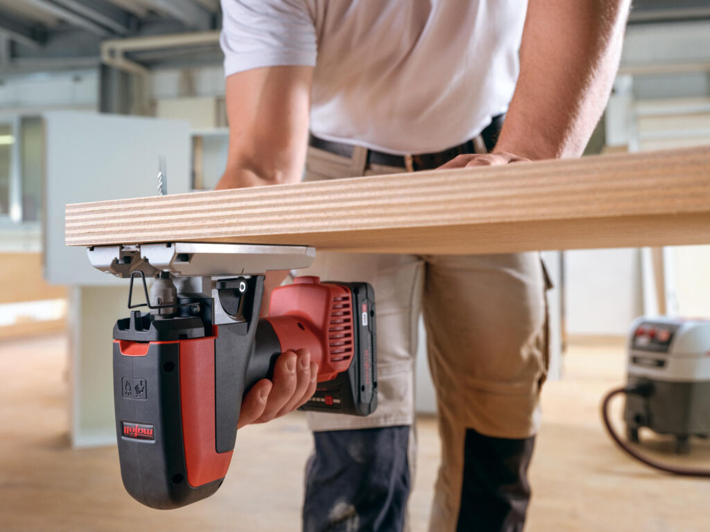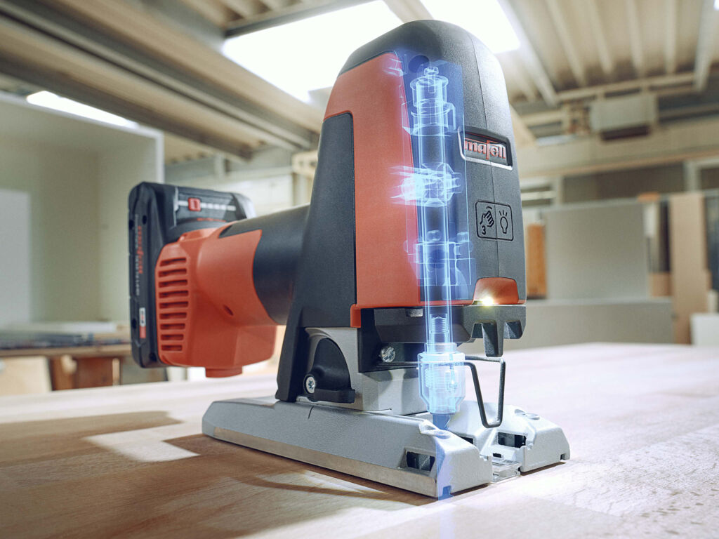 Stichsägen sind Alleskönner und werden häufig für Aussparungen und Ausschnitte mit einem eingeschränkten Arbeitsraum verwendet. Deshalb hat Mafell in der Entwicklungs- und Erprobungsphase neben Leistung und Genauigkeit besonderes Augenmerk auf die Handhabung und den Bedienkomfort gelegt: Das ErgoBalance-Konzept verspricht Gewichtsbalance, Sicherheit und Kontrolle. Das Gehäuse ist für alle Griffpositionen – auch beim Untergreifen zum Rückwärtssägen – mit rutschhemmenden und vibrationsdämpfenden Weichkomponenten umschäumt. Die gut sichtbaren roten Schalter sind ohne Umgreifen ergonomisch positioniert – auch für Linkshänder. Das schlanke Gehäuse ohne Überstände und Kanten lässt sich leicht auf- und ablegen, ohne das Werkstück zu beschädigen. Die Sägeblattspannung, die Geometrie der Grundplatte und die zwei LEDs ermöglichen freie Sicht auf das Sägeblatt und das Werkstück. Die Genauigkeit der PS 2-18 ist ein Zusammenwirken der patentierten Sägeblattspannung, der Sägeblätter, der breiten Grundplatte, des niedrigen Schwerpunkts und der Gewichtsbalance – trotz des Akkus. Der VCMC-HZ spannt Werkstücke seitlich. Sein beidseitiger Anschlag senkt Rüstzeiten und steigert die Leistung. Vier Spannhöhen und die Wahl zwischen Druckluft oder Mechanik garantieren Anwendern maximale Flexibilität. ‣ weiterlesen