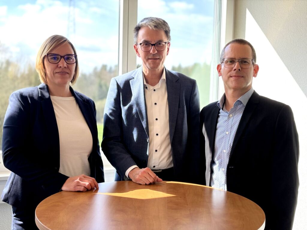 v.l.: Prokuristin Simone Kaiser (kaufmännische Leitung), Dr. Olaf Meincke (Geschäftsführer Jowat Swiss/Vorstand Jowat) und Prokurist Marcel Widin (technische Leitung)