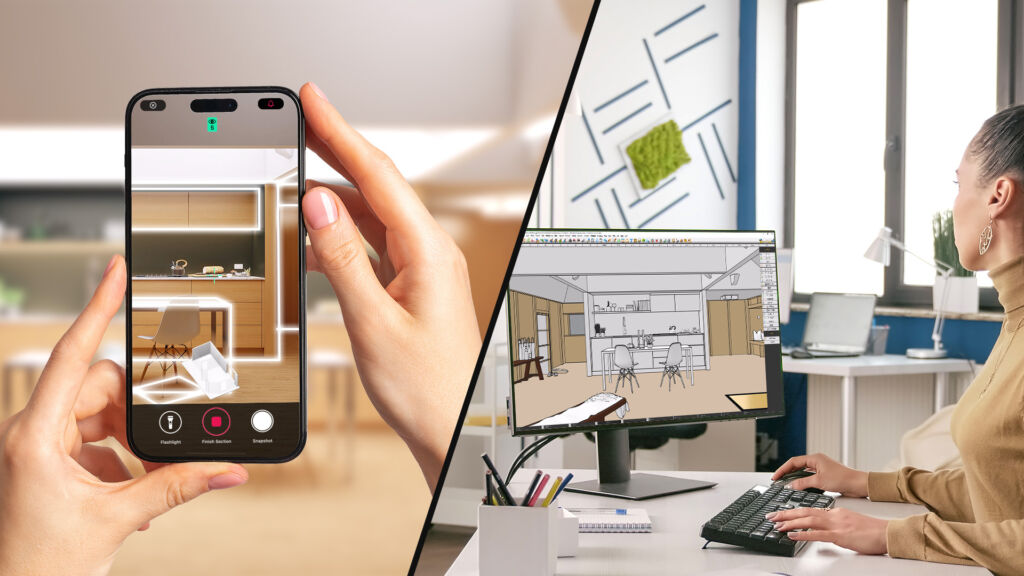 Die neue Partnerschaft zwischen Pytha und Metaroom by Amrax ermöglicht erstmals den Import von 3D-Scandaten in die Pytha-3D-CAD-Software. Nutzer können damit Innenräume schnell und präzise planen – und 90% Zeit gegenüber der manuellen Vermessung sparen. Denn mit der Metaroom-Scan-App lassen sich Räume per Lidar-Sensor auf Apple-Pro-Geräten erfassen. Der Scan wird in die Cloud hochgeladen und erzeugt automatisch ein maßstabsgetreues 3D-Modell. Dieses Modell können Anwender direkt in Pytha importieren und weiterbearbeiten – für detaillierte Layouts, Visualisierungen und technische Zeichnungen bis hin zur CAM-Datenaufbereitung.