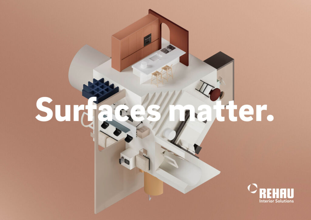 Rehau kommuniziert seine Rauvisio-Oberflächen jetzt unter dem Claim ‚Surfaces Matter‘. – Bild: Rehau Industries SE & Co. KG