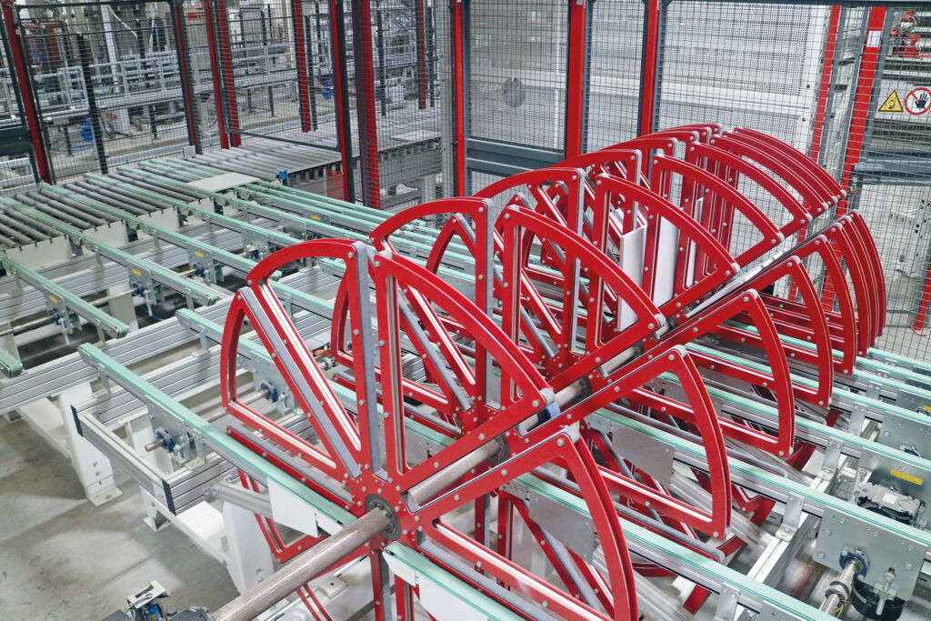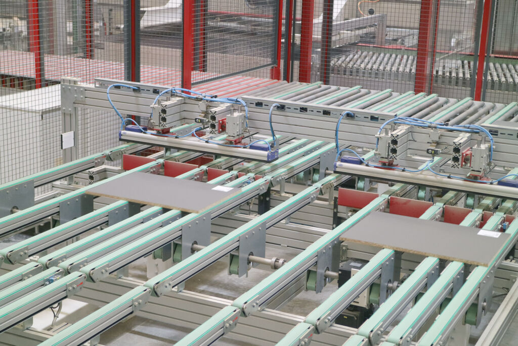 Um Platz zu sparen, hat man die Transporteinheiten an verschiedenen Stellen in zwei Ebenen horizontal übereinander konfiguriert. Das organisiert den Materialfluss und integriert in die bestehenden Abläufe von Gamadecor. Gesteuert wird die gesamte Anlage über die Anlagensteuerung IPC.Net aus dem Hause IMA Schelling. Für den Kunden hat das den Vorteil, dass er alles aus einer Hand bekommt – Schnittstellenprobleme ausgeschlossen.