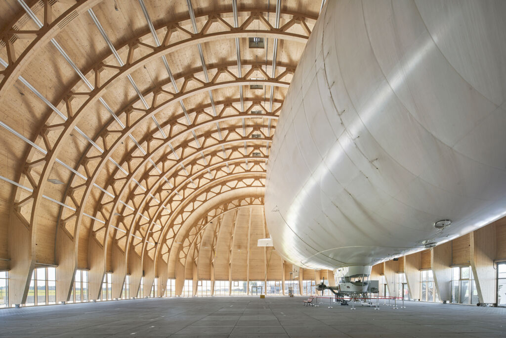Das Tragwerk des neuen Luftschiffhangars von WDL besteht aus Holz und Holzwerkstoffen - insgesamt 557 Tonnen.