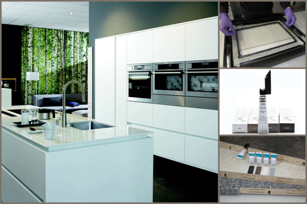 Die neuen Klebstoffe von Ruderer eignen sich für sämtliche Anwendungen im Küchenbau: der Montage von Küchenelementen, dem Abdichten von Arbeitsplatten, dem Kleben von Kanten und Fronten, der Ummantelung von Profilen, dem Kaschieren von Flächen oder dem Herstellen von Küchengeräten.