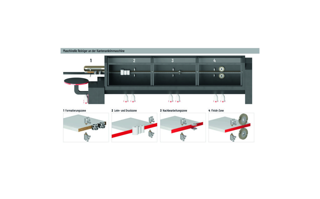 Das Riepe-Sortiment bei Ostermann umfasst 12 Produkte für jede Station der Kantenanleimmaschine sowie für manuelle Arbeiten. – Bild: Rudolf Ostermann GmbH