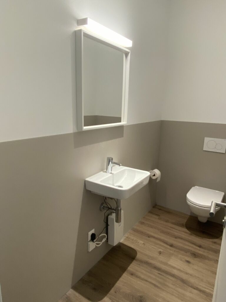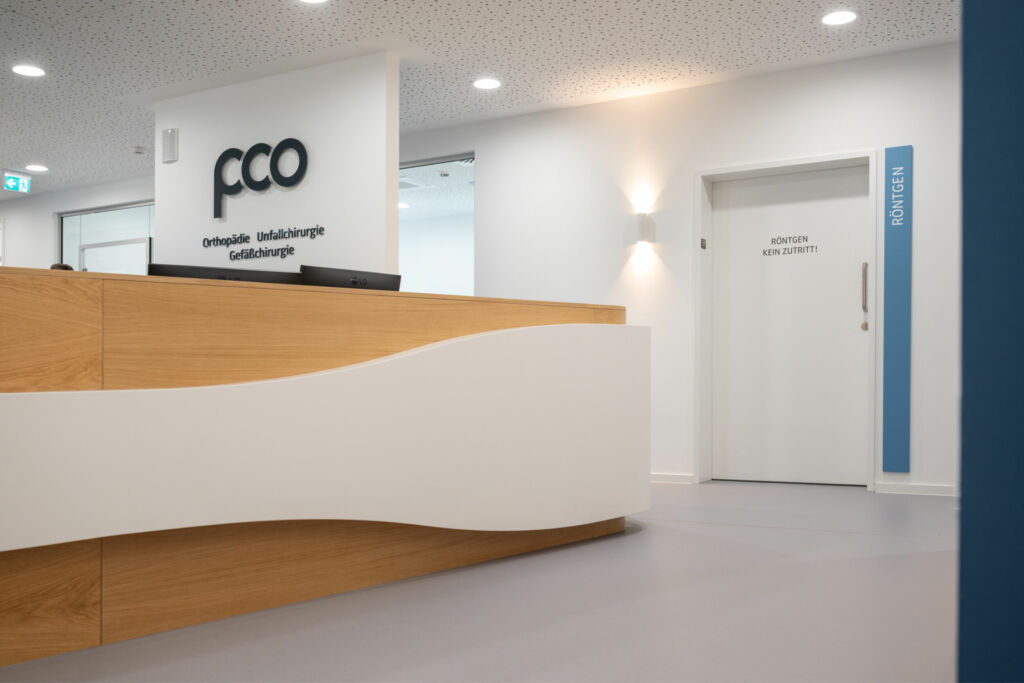 Rauvisio noir ist eine robuste HPL-Oberfläche mit edelmattem Finish und samtweicher Oberfläche, die sich für den mechanisch viel beanspruchten horizontalen, aber auch für den vertikalen Einsatz eignet – und die auch im hygienesensiblen Bereich eine gute Figur macht. Sie ist leicht zu reinigen und antibakteriell. Zudem hat sie auch im flachen Winkel eine niedrige Lichtreflektion und sieht dank Anti-Fingerprint auch nach einem langen Arbeitstag noch ansehnlich aus. Sie ist widerstandsfähig gegen Kratzer und Mikrokratzer und beständig gegenüber Hitze und Feuchtigkeit. Und sie ist schlagresistent. „Am Ende müssen die Möbel langlebig sein. Wir bauen eine Praxis, die für mindestens 20 Jahre dasteht, bevor sie eventuell wieder umgebaut wird. Also haben wir einen hohen Anspruch an die Materialien und auch an die Kanten. Läuft ein Material gelb an, weil mit Desinfektionsmittel gearbeitet wird, kommt es für uns nicht infrage“, erklärt Oer und macht auf einen weiteren Punkt aufmerksam: „Zu Hause in der eigenen Küche ist man ja meist vorsichtig, aber in einer Praxis laufen 20 manchmal gestresste Mitarbeiter herum. Dazu kommt die Reinigungskraft, die versehentlich das falsche Mittel verwendet. Das alles muss ein Material abkönnen.“