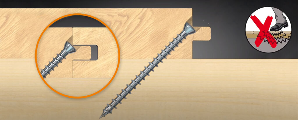 Die Heco-Topix-Plus-Dielenschraube von Heco kombiniert die Vorteile von Teil- und Vollgewindeschrauben. Ihr Linsenkopf mit Fräsrippen ermöglicht ein müheloses Versenken mit 45° Einschraubwinkel über der Nutfeder. Das gewährleistet eine verdeckte, randnahe und spannungsfreie Montage der Dielen. Die Dielenbretter werden durch den Winkel und das patentierte Vollgewinde mit MagicClose-Effekt beim Anschrauben kurz angehoben und anschließend fest sowie spaltfrei angezogen. Der Klemmeffekt ist ideal bei einer Anbauteilstärke von 50% der Schraubenlänge. Die Schraube verfügt über eine CE-Kennzeichnung sowie eine chrom(VI)-freie Beschichtung und ist erhältlich in Durchmessern von 3,5 bis 4,5mm und Längen von 40 bis 80mm. Bei einem Durchmesser von 3,5mm ist der Schraubenkopf lediglich 5,3mm breit, womit sie sich auch für die Befestigung von Sockelleisten eignet. Die verzinkte Ausführung sowie die aus Edelstahl A2 macht sie auch bei hoher Feuchtigkeit beständig und kann sowohl im Innen- als auch im Außenbereich eingesetzt werden.