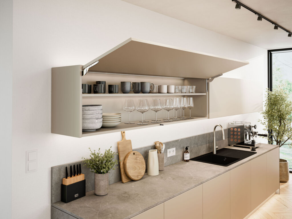 Free Slim ist ein Klappenbeschlag mit neu gedachtem Kraftspeicher-Prinzip. – Bild: Häfele SE & Co KG