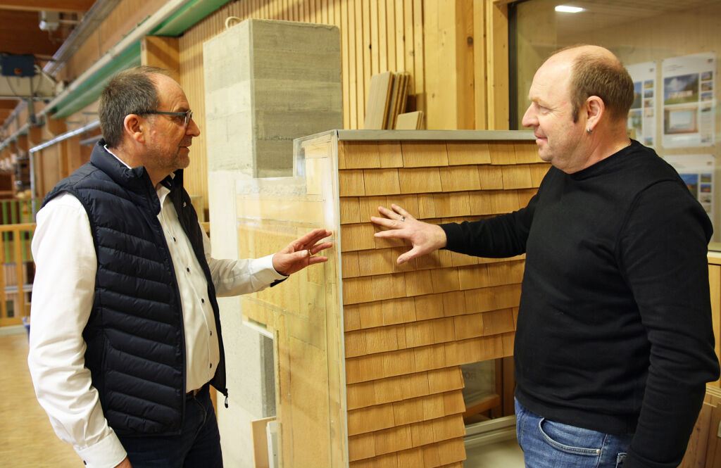 Für den Vertrieb ist Josef Fessler zuständig. Als Tischler- und Zimmermeister weiß er bei den Kunden, wovon er spricht. Ein großer Teil von ihnen beauftragt Alpina mit individueller Planung, viele orientieren an den Musterhausbeispielen. Andere kommen bereits mit fertigen Plänen. Alpina tritt als Generalunternehmer auf und baut schlüsselfertige Häuser. Anspruch: eine möglichst hohe eigene Wertschöpfung. Neben dem Holzbau führt man zudem Innenausbau und Fassadenarbeiten aus. In der hauseigenen Tischlerei werden Fenster, Türen, Treppen sowie individuelle Möbel gefertigt, geliefert und eingebaut. Auf Wunsch tritt Alpina auch als Bauträger auf. Dann entwickelt das Unternehmen Mehrfamilienhäuser – von der Projektierung bis zum Verkauf der Wohnungen.