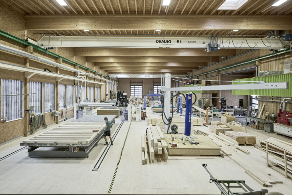 Der Maschine voraus gingen eine automatisierte Einblasdämmung und ein Abbundzentrum. Nicht nur sichere und qualitative Prozesse waren dafür der Grund – auch die Mitarbeiter spielten eine Rolle bei der Automatisierung. Denn Alpina sucht laufend Lehrlinge und Fachkräfte im Holzbau und legt daher Wert auf attraktive, zukunftssichere Arbeitsplätze.