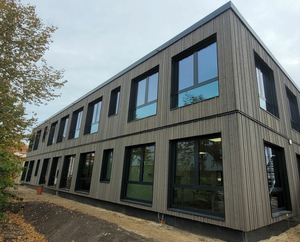 Bau- und Fassadenelemente so weit vorfertigen, dass Bauherren mit kurzer Bauzeit rechnen können: Das macht den seriellen und modularen Holzbau aus. Ladenburger Holzwerke unterstützt diesen Trend mit hohem Vorfertigungsgrad seiner Holzfassaden. Das Unternehmen schneidet geschosshohe Fassadenprofile bereits im Werk millimetergenau zu, versieht sie mit einer Tropfkante und farbbeschichtet auf allen sechs Seiten. Das Ergebnis beschleunigt die Montage der Fassade spürbar. „Aktuell kommt diese Bauform vor allem bei öffentlichen Bauten zum Einsatz“, weiß Ladenburger-Geschäftsführer Markus Hauber. Eine Ausnahme: Der Neubau eines Seniorenheims, den das Unternehmen mit einer vorgefertigten Fassade unterstützt hat.