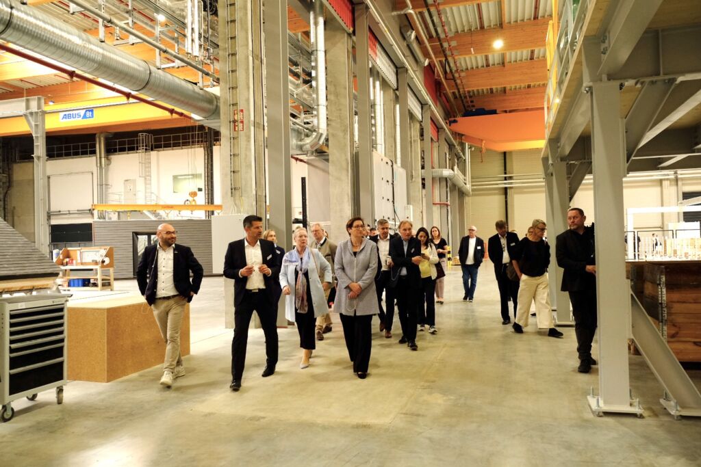 „Fast ein Drittel der CO2-Emissionen in Deutschland entsteht durch die Bau- und Gebäudewirtschaft. Nicht überall sind konventionelle Baustoffe substituierbar, aber im Wohnungsbau – und das ist unser Schwerpunkt – kann vieles durch Holz ersetzt werden. Wir als Unternehmen sehen darin unsere generationenübergreifende Verantwortung“, die B&O gemäß Prokuristin Münn mit einem innovativen Fertigungsverfahren für die industrielle Verarbeitung des eingesetzten Materials gerne übernimmt.