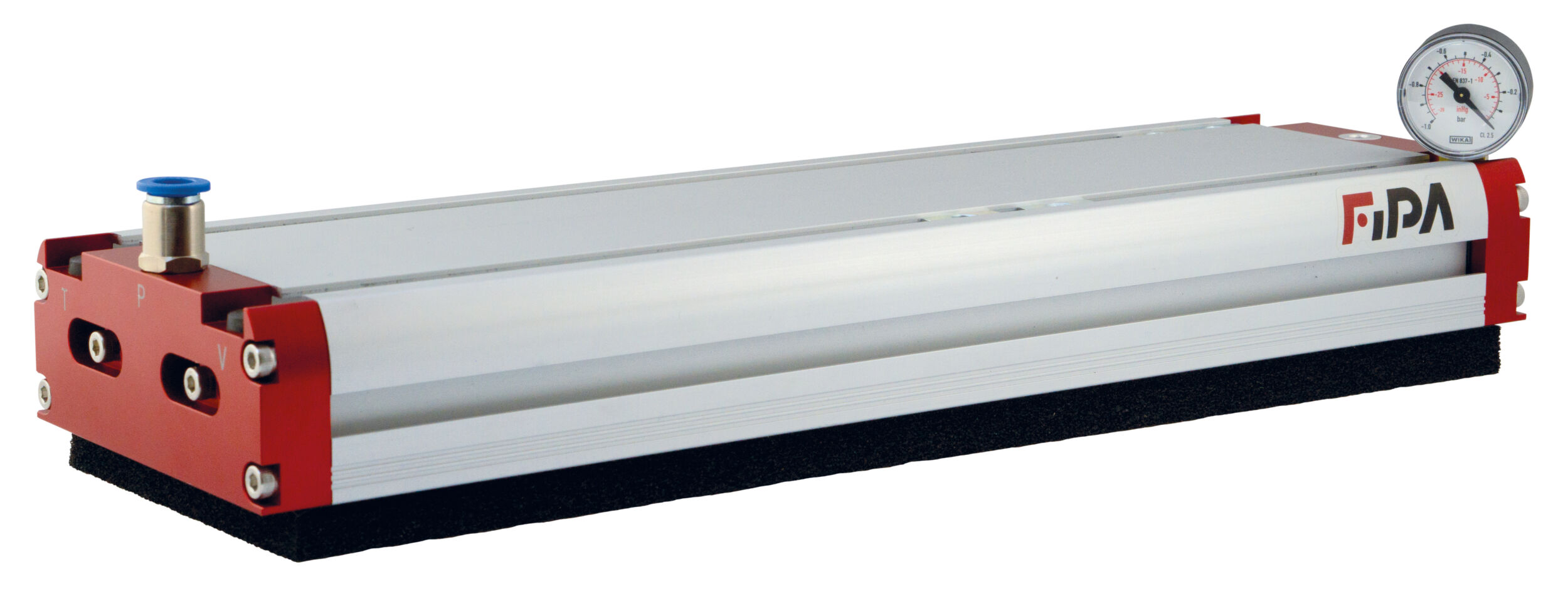 Gemeinsam mit dem Spezialist für Vakuum-, Greifer- und Hebetechnik aus Ismaning hat man sich für zwei Reihen mit jeweils zehn Flächengreifern entschieden. Sie haben einzelne Spanplatten mit unterschiedlichen Abmessungen hand. Und sie nehmen Holzteile auch dann zuverlässig auf, wenn ihre genaue Position nicht eindeutig definiert ist. Zwar steht die Anlage in staubiger Nachbarschaft zu einer alten Holzma-Säge und muss deshalb regelmäßig gereinigt werden, vor allem beim Dichtschaum der Flächensauger. Aber mit den Fipa-Flächengreifern der FSG-Reihe ist das schnell erledigt – denn der Dichtschaum ist schnell, zerstörungs- und rückstandsfrei getauscht. „Wir konnten die Ausfallzeiten auf unter 5% reduzieren“, gibt sich Wischmeyer zufrieden. Noch weniger sei bei den komplexen Werkstücken auch kaum möglich.
