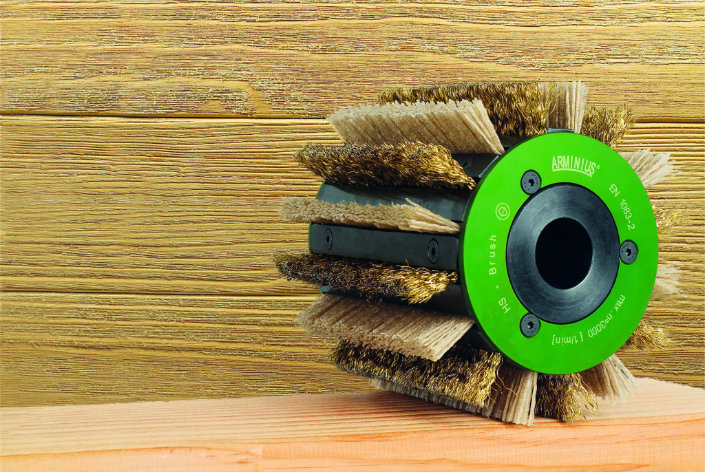 Je nach Holzart und -eigenschaften stehen der Bürste unterschiedliche Bürstmaterialien zur Verfügung. Hier findet der Anwender die gesamte Palette an Borsten: von Kunststoff- über Messing- bis hin zu Stahlborsten. Der Vorteil beim Einsatz einer Arminius-Bürste zum Strukturieren liegt in der flexiblen Bestückung. Denn sie lässt sich nicht nur leicht austauschen, sondern auch vielfältig kombinieren. Durch das Einmischen von Schleifkornborsten werden beispielsweise die beim Strukturieren hervortretenden Holzfasern entfernt. Für moderne Maschinenkonzepte liefert das Unternehmen seinen Kunden leistungsstarke Bürsten zum Strukturieren von Massiv- und Altholz.