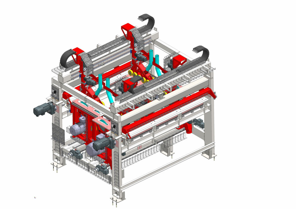 Die LNC-Paketsäge übernimmt den Querschnitt mit einer Paketstärke von bis zu 220mm. Auch hier arbeiten Hauptsäge, Zerspaner und Ritzsäge im Doppelaggregat zusammen. Der Besäumschnitt erfolgt mit minimaler Breite – abhängig lediglich von der Maßhaltigkeit der Rohplatten. Möglich sind Saumbreiten ab 1mm. Beide Sägen sind so ausgelegt, dass ihre Leistung die der Schleifmaschine übertrifft und sie so bestmöglich ausgenutzt wird.