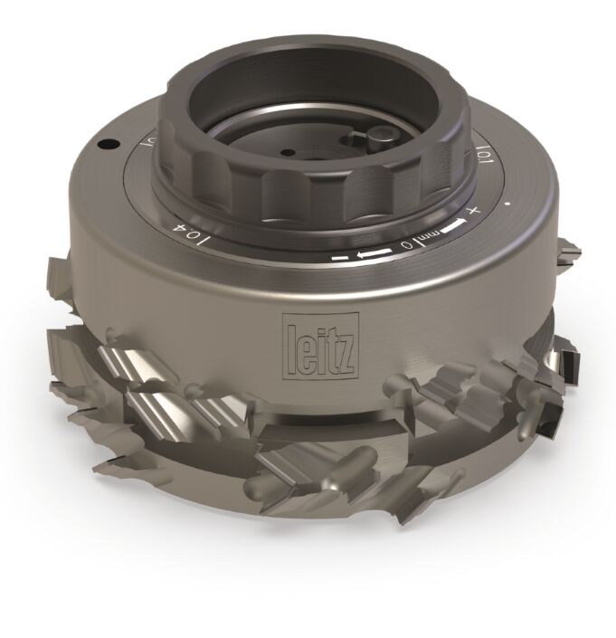 Eigens dafür hat Leitz den breitenverstellbaren Fügefräser entwickelt. Er zeigt, wie die noch scharfen Schneidebereiche zur Standwegaddition genutzt werden können. Denn mit seiner Breitenverstellung bringt dieses zweiteilige Werkzeugsystem auch ungenutzte Schneidebereiche in den Zerspanungsbereich der Deckschichten. Verstellbar ist es mit wenigen Griffen in Millimeterschritten. Das vervielfacht die Standwege, vor allem verglichen mit einteiligen Fügefräsern. Sechsmal verstellt, erreicht das Werkzeug den siebenfachen Standweg, ehe es geschärft werden muss. Außerdem muss der Anwender die Spindelposition nicht korrigieren, weil die Breitenverstellung des Werkzeugs zur Plattenober- und -unterseite erfolgt. Daher sind weniger Werkzeugwechsel und keine Einstellarbeiten zum Ausrichten der Werkzeuge nötig. Im Vergleich stehen Maschinen bis zu 80% weniger still. Hersteller solcher Werkzeuge sind dabei herausgefordert, dieselbe Genauigkeit zu erreichen wie mit einteiligen Werkzeugen. Zudem müssen sie trotz Staub und Spänen funktionssicher sein. Dafür bietet Leitz ein Hydrospannsystem, bedienerfreundlich von oben zu betätigen. Der integrierte Staubschutz macht das Werkzeugsystem präzise und zuverlässig.